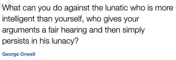 “People can foresee the future only when it coincides with their own wishes, and the most grossly obvious facts can be ignored when they are unwelcome.” George Orwell