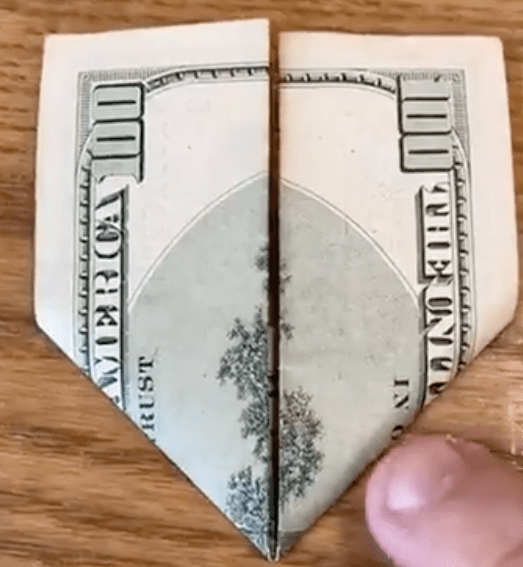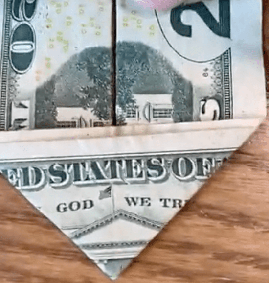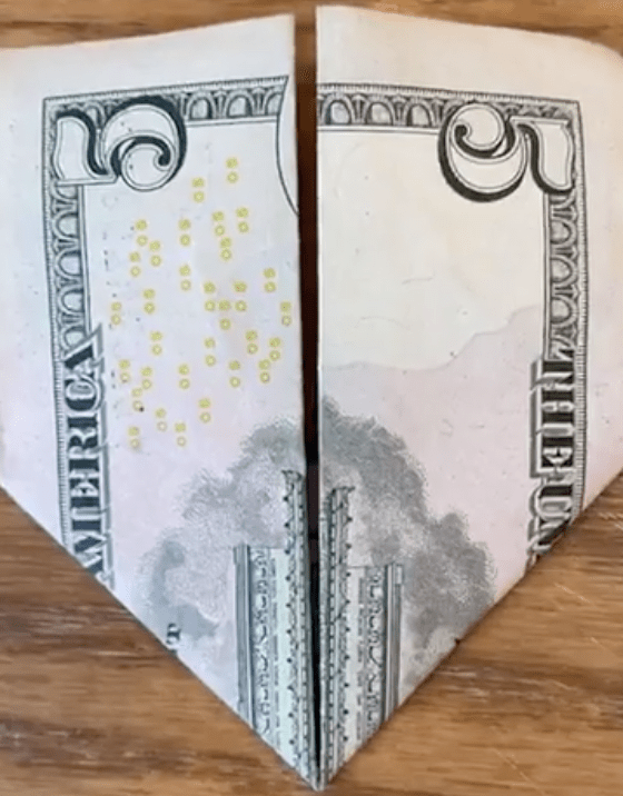 When you fold the fiver into the shape of the a plane you see the twin towers