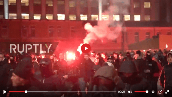 Footage shows demonstrators with lit torches as they walked through the city chanting anti-government slogans.