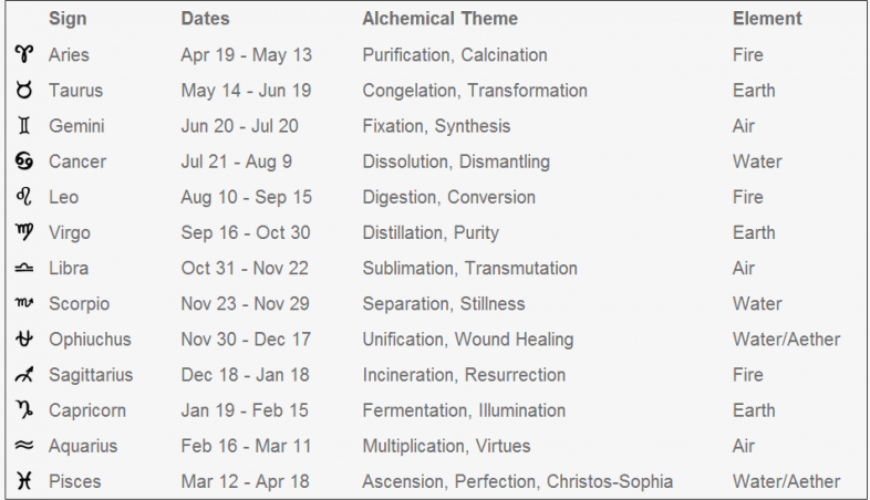 In case you are wondering what your sign is according to the Galatic Zodiac check out this table.
